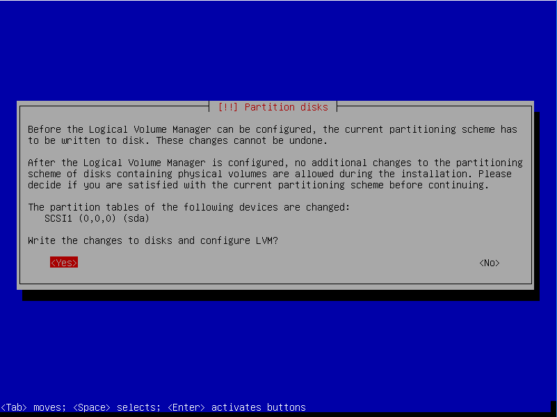 Yapılandırmamızın LVM olması için onayımızı veriyoruz.