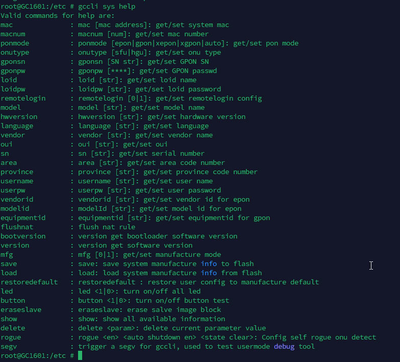 gccli sys gponsn SN <PON_NO>