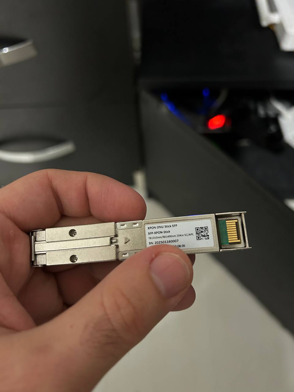 Şimdi bu arkadaşı SFP yuvasına takın, Single Mode olduğu için 20KM menzil gösterecek fiber kablo takılı olmadığı içinde -40dBm göreceksiniz sinyallerde bu gayet normal.